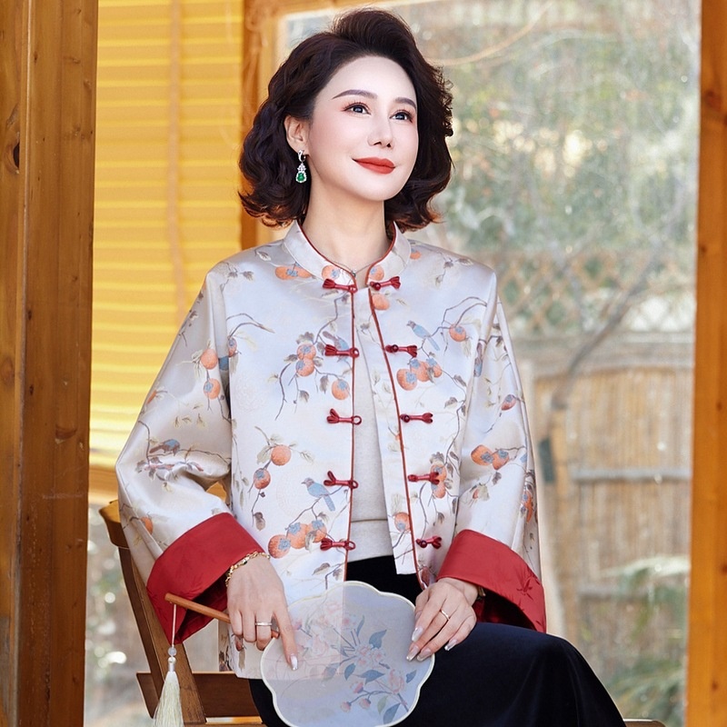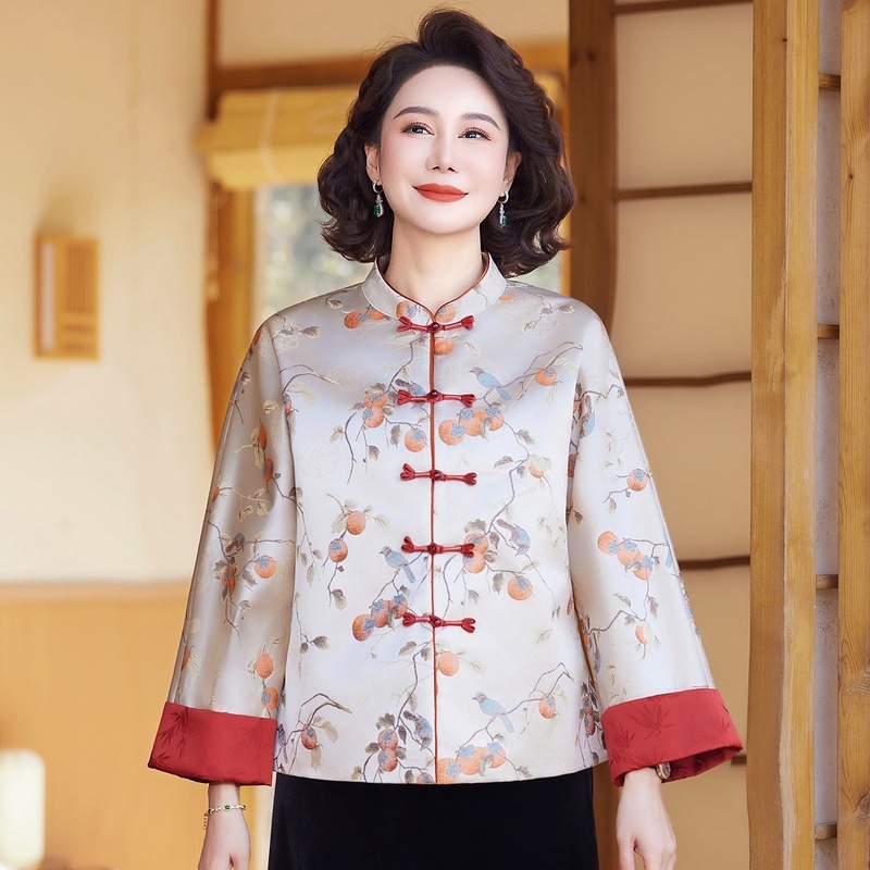 商品名称:新中式秋季国风妈妈外套2025新款气质优雅中老年碎花上衣一件代发