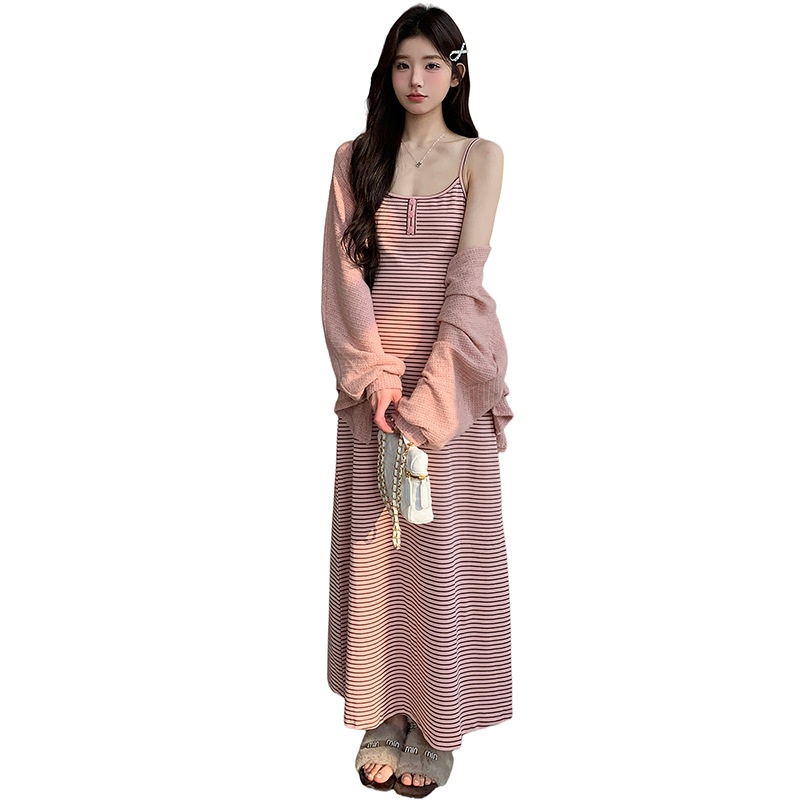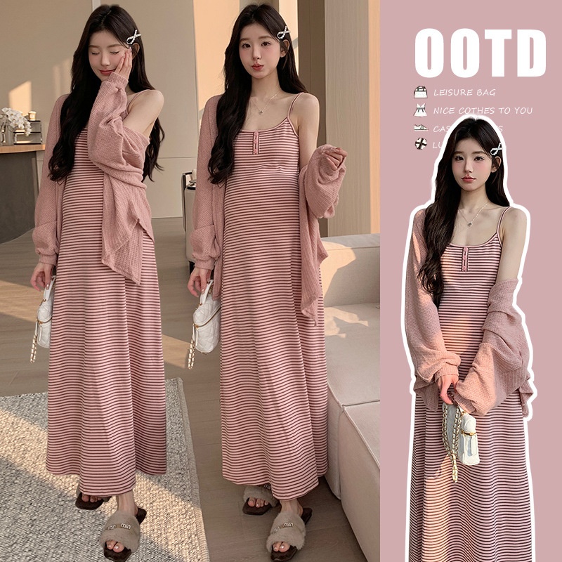 孕期穿搭2026春季新品纯欲慵懒风吊带连衣裙+针织小开衫孕妇套装