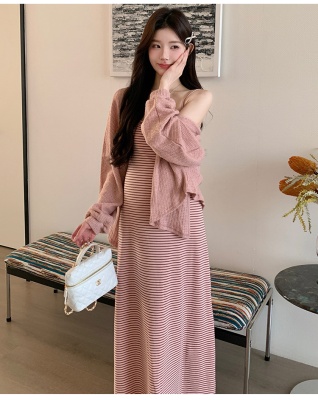 商品名称:孕期穿搭2026春季新品纯欲慵懒风吊带连衣裙+针织小开衫孕妇套装