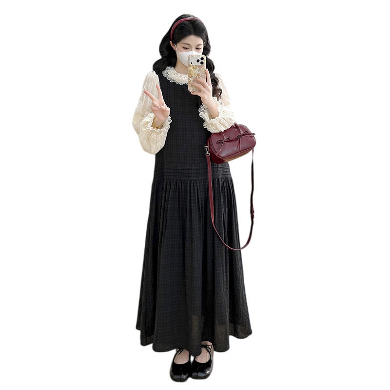 商品名称:孕期穿搭2026春季新品经典格子长裙气质蕾丝衬衫潮妈显瘦孕妇套装