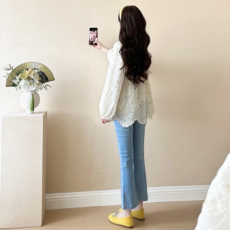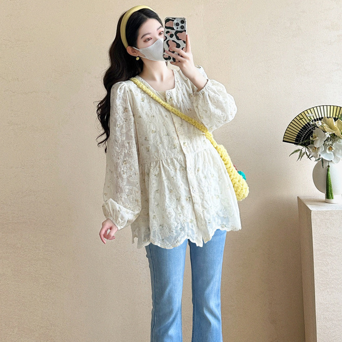 孕妇上衣2025春装新款韩版甜美刺绣宽松显瘦百搭可哺乳长袖娃娃衫