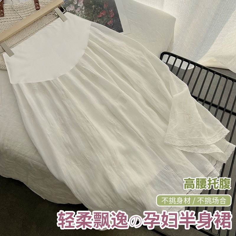 孕妇半身裙时尚春夏新款时尚文艺气质镂空花边棉麻刺绣显瘦A字裙