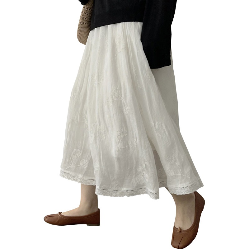 商品名称:孕妇半身裙时尚春夏新款时尚文艺气质镂空花边棉麻刺绣显瘦A字裙