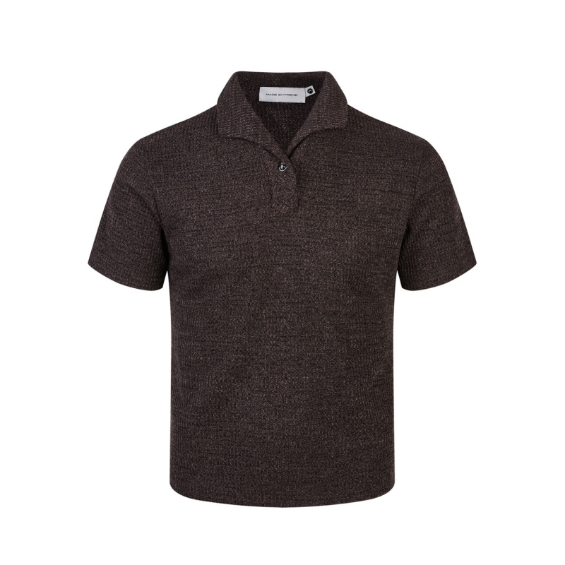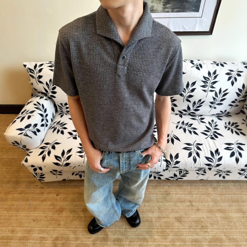 EME易盛易 轻奢罗马格意式一片领猫眼石扣正肩短袖打底polo衫男