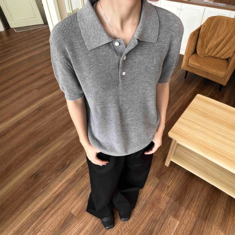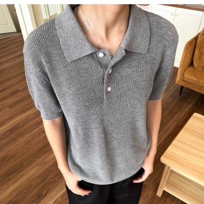 EME男装 新贵高奢夏季针织棉麻花纱老钱松弛透气polo短袖针织衫