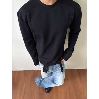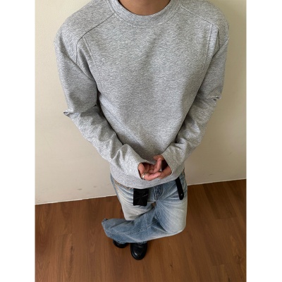 EME 320g澳产氨纶太空棉空气层拼接长袖T恤抗皱硬挺短款boxy版型