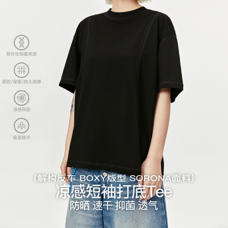 MADEEXTREME夏季基础通勤短袖解构小领口凉感防晒抑菌t恤男Sorona