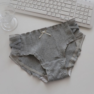 商品名称:欧尼韩系气质小姐姐弹力螺纹棉三角内裤女生网纱拼接中腰学生底裤