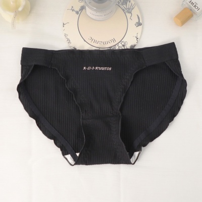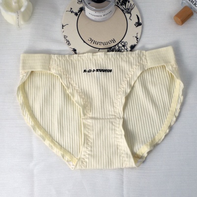 商品名称:弹力腰带螺纹棉质高开叉木耳边可爱英文滴胶舒适中腰少女三角内裤