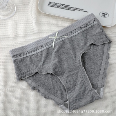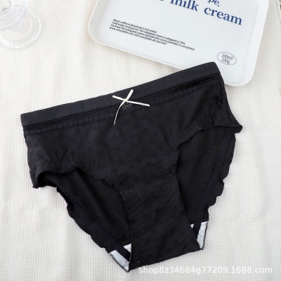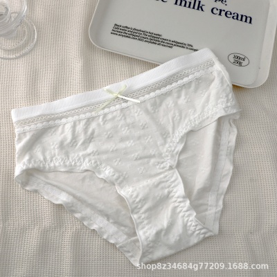 商品名称:可爱镂空蕾丝荷叶边棉质柔软细腻亲肤蝴蝶结甜美提花少女三角内裤
