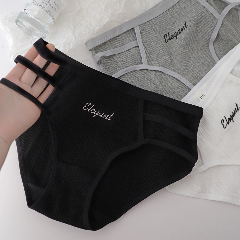率性简约绑带少女罗纹棉内裤韩版透气中腰三角裤学生小特色底裤