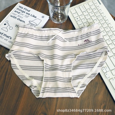 时尚棉质爽条纹可爱海豚字母印花青春高弹木耳边少女中腰三角内裤