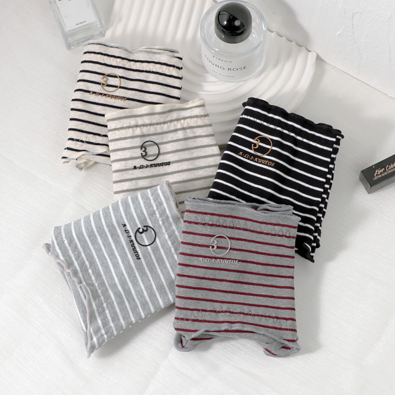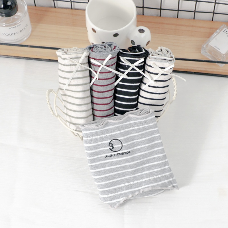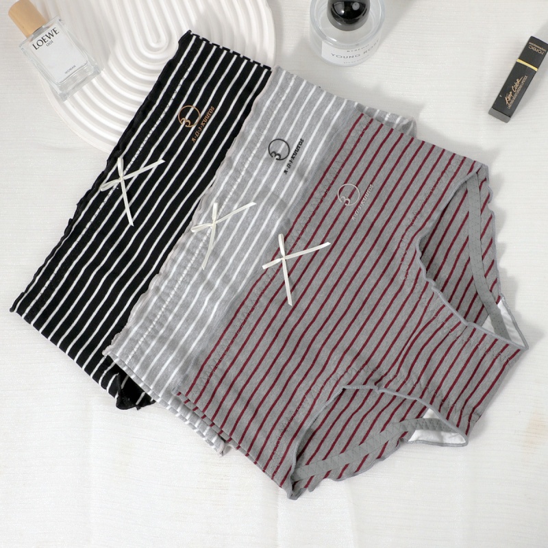棉质条纹中腰包臀透气简约滴胶精美蝴蝶结舒适木耳边少女三角内裤