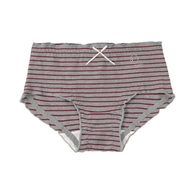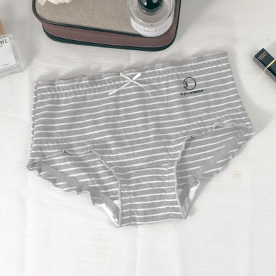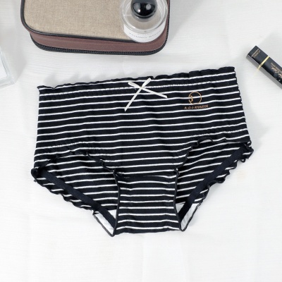 商品名称:棉质条纹中腰包臀透气简约滴胶精美蝴蝶结舒适木耳边少女三角内裤