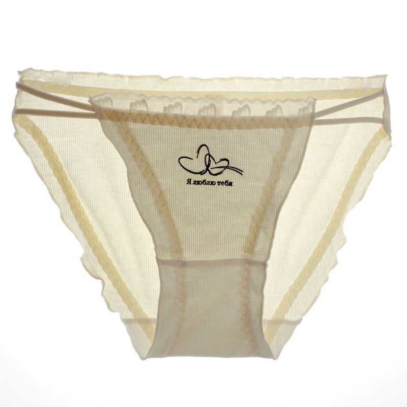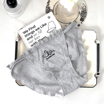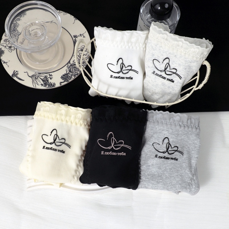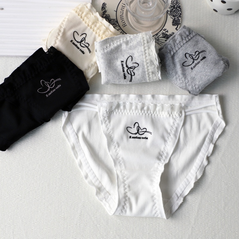 in细螺纹棉少女双爱心滴胶学生底裤透气中腰女士三角吊带蕾丝裤头