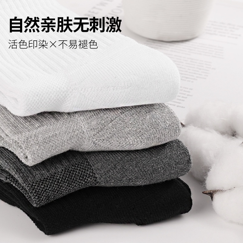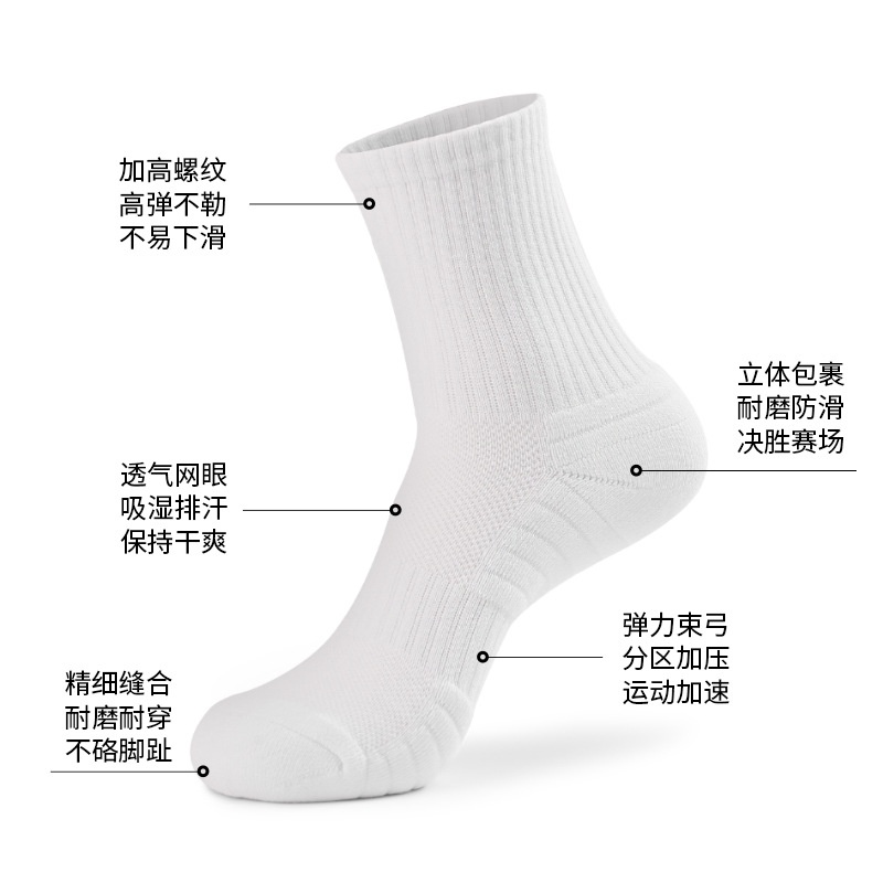 跨境纯棉运动袜毛巾底加厚男篮球纯色透气舒适网孔跑步袜子吸汗
