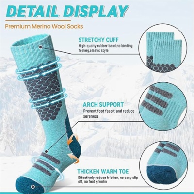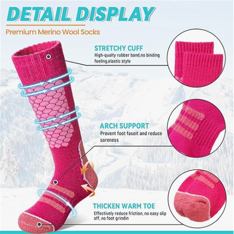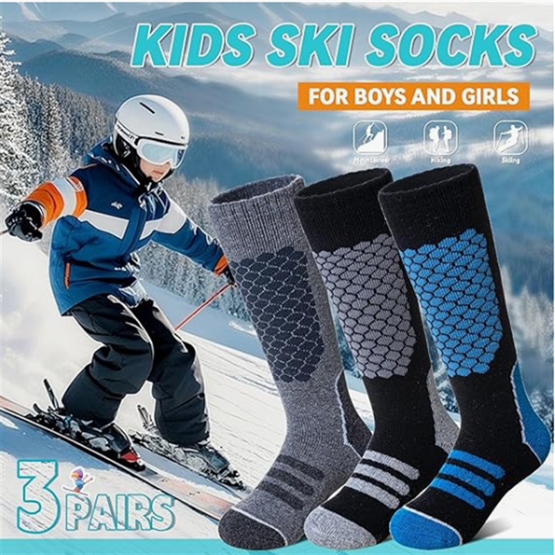 儿童滑雪袜加厚保暖冬季登山袜防滑毛巾底户外雪地袜长筒运动棉袜