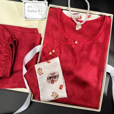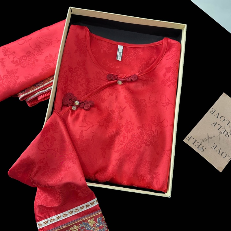 商品名称:2025春季新款中国红新中式提花睡衣女长袖盘扣家居服套装高级感国