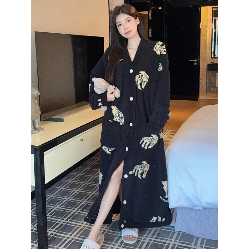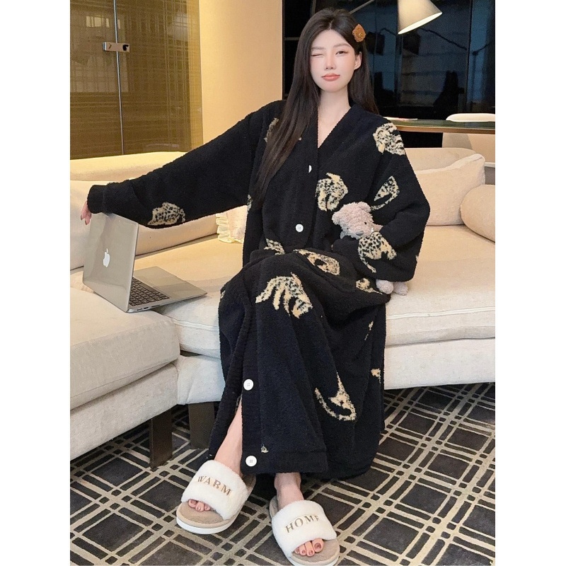 商品名称:冬季新款上新加绒加厚半边绒开衫长款睡裙女睡袍浴袍