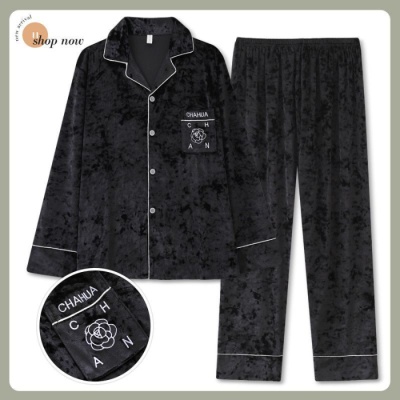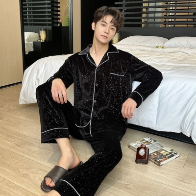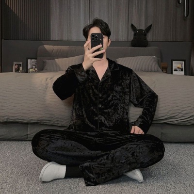 商品名称:金丝绒男款系列秋冬新款男士金丝绒长袖开衫家居服套装