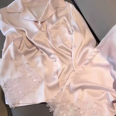 商品名称:睡衣女春秋薄款冰雪丝秋季长袖蕾丝花边高级感家居服两件套