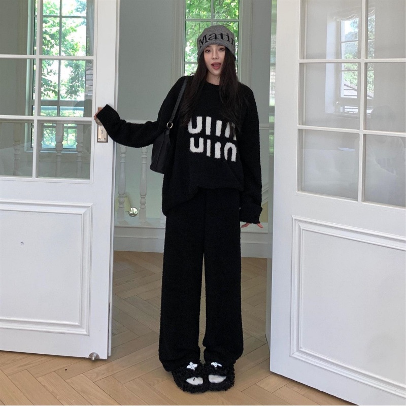 商品名称:秋冬季新款女士加厚半边绒圆领加肥加大睡衣家居服套装