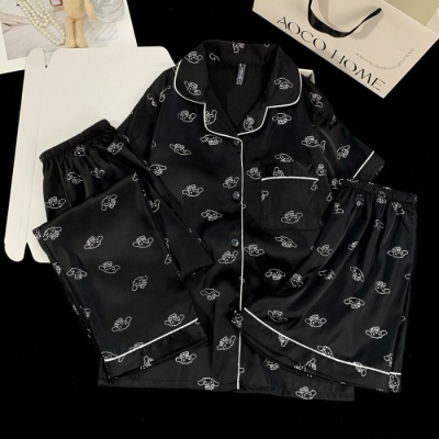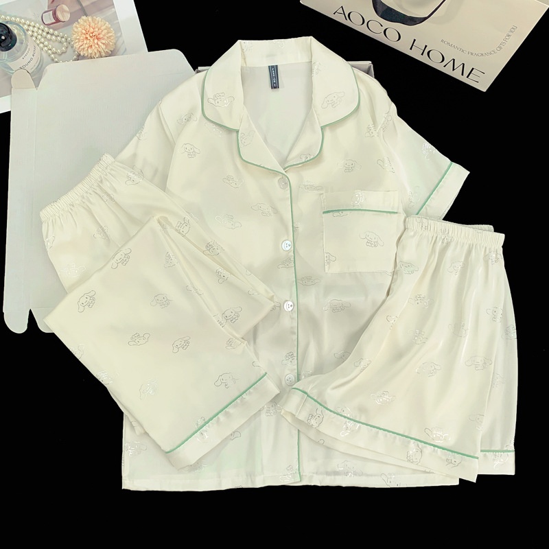 直播爆款夏季带胸垫短袖冰雪丝睡衣女薄款冰丝三件套家居服