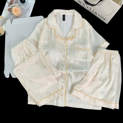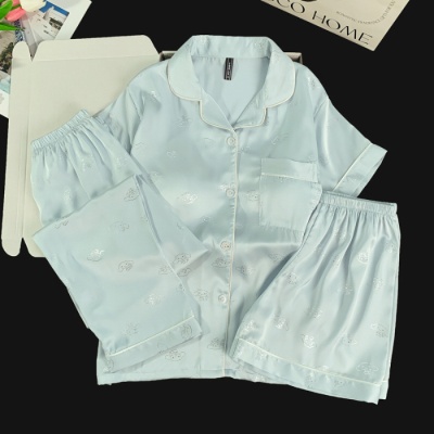 商品名称:直播爆款夏季带胸垫短袖冰雪丝睡衣女薄款冰丝三件套家居服