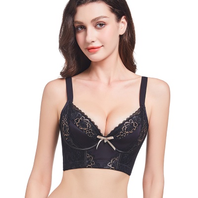 商品名称:美容院大胸显小蕾丝内衣女薄款聚拢收副乳调整型文胸防下垂胸罩