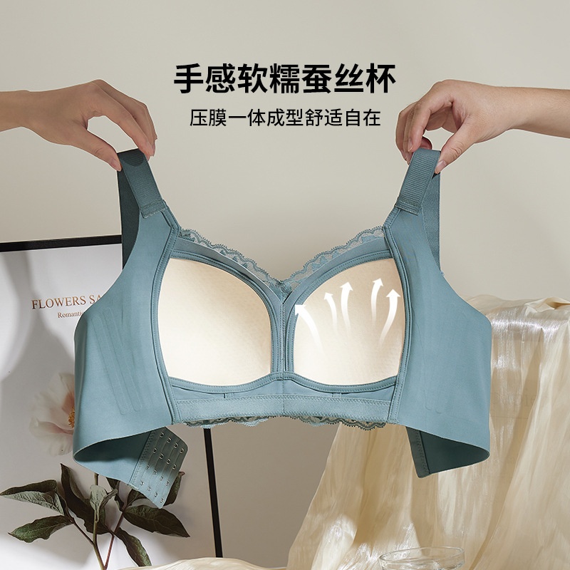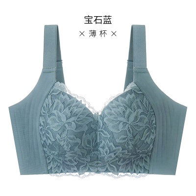 商品名称:大胸显小果冻条软支撑内衣女无钢圈防下垂收副乳调整型文胸夏季薄