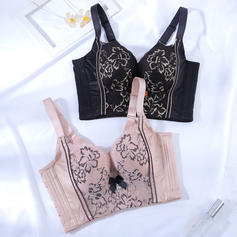 调整型小胸显大聚拢上托厚款内衣双肩带美背收副乳文胸六排扣侧收