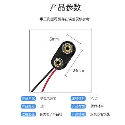 定制T型9v电池硬扣 玩具仪器连接线夹铜线端子接头塑壳9v电池卡扣