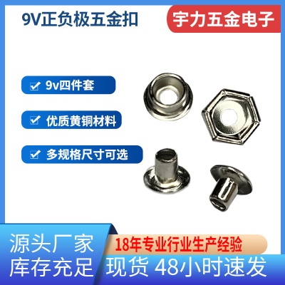 9v电池配件正负极帽母扣B花开孔铆钉正极无孔a珠黄铜镀镍六角螺母