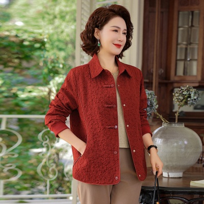 2025年春秋妈妈女装翻领夹克外套新款中老年女款时尚洋气夹克外套