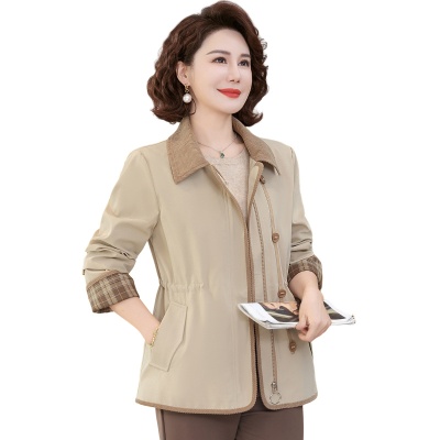 妈妈翻领外套春2025年春季新款修身收腰时尚夹克外套女款一件代发