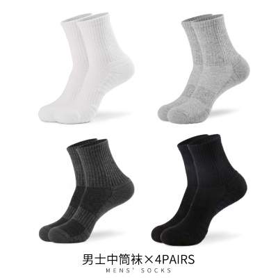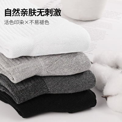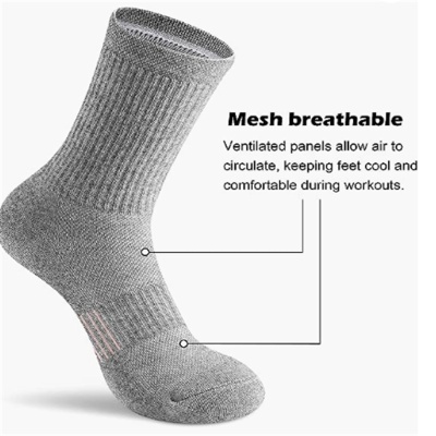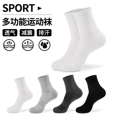 跨境纯棉运动袜毛巾底加厚男篮球纯色透气舒适网孔跑步袜子吸汗