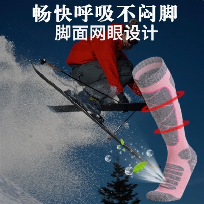 儿童滑雪袜加厚保暖冬季登山袜防滑毛巾底户外成人雪地长筒运动袜