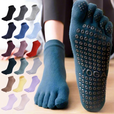 跨境女士精梳棉五指袜防滑点胶透气舞蹈运动健身专业普拉提瑜伽袜