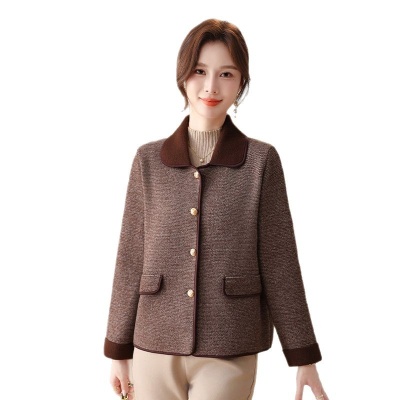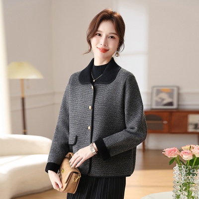 2025翻领开衫秋季新款妈妈百搭外套时尚针织开衫女上衣中年外搭