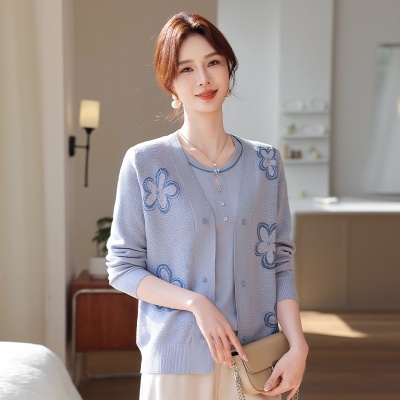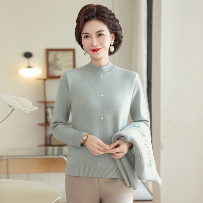 新中式妈妈秋装针织衫上衣两件套洋气中老年秋冬国风刺绣毛衣外套