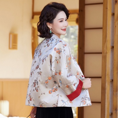 新中式秋季国风妈妈外套2025新款气质优雅中老年碎花上衣一件代发