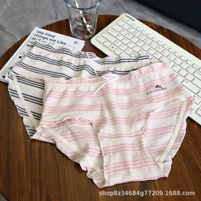 治愈系韩式可爱Gao颜值细条纹少女三角内裤棉透气中腰内裤女士新