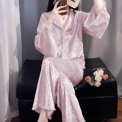春季新款金丝绒开衫长袖可外穿时尚风家居服套装保暖睡衣女