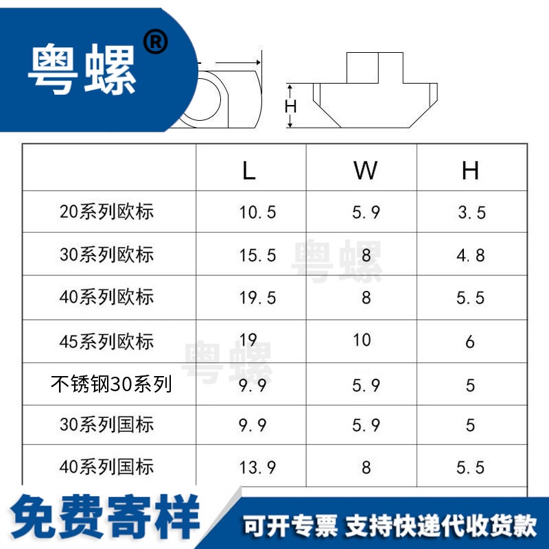 商品名称:M3M4M5M6M8船型螺母工业铝型材配件20-30-40-45 欧标/国标T型螺母