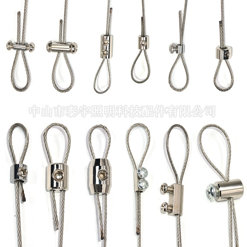 商品名称:供应钢丝绳锁线器可调节304不锈钢丝绳晾衣架挂画自锁双孔卡线器