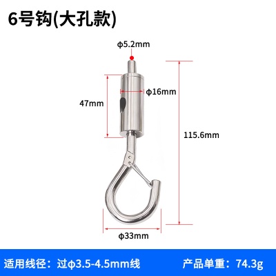 6号钩-大孔款(适用3-4.5mm钢丝绳)