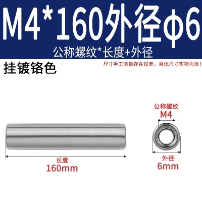 商品名称:空心内牙管螺纹连接件M4内牙棒灯饰工艺品亚克力通孔连接管挂镀铬