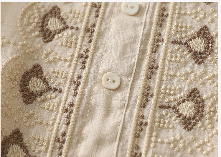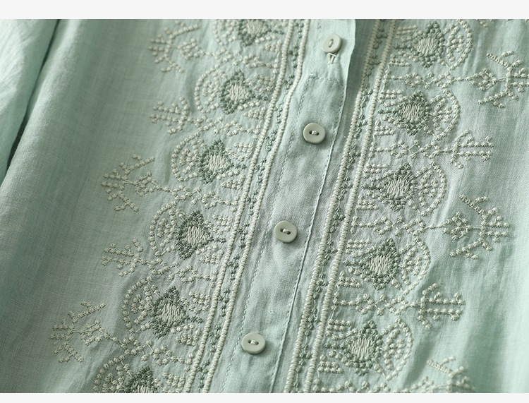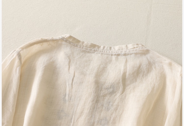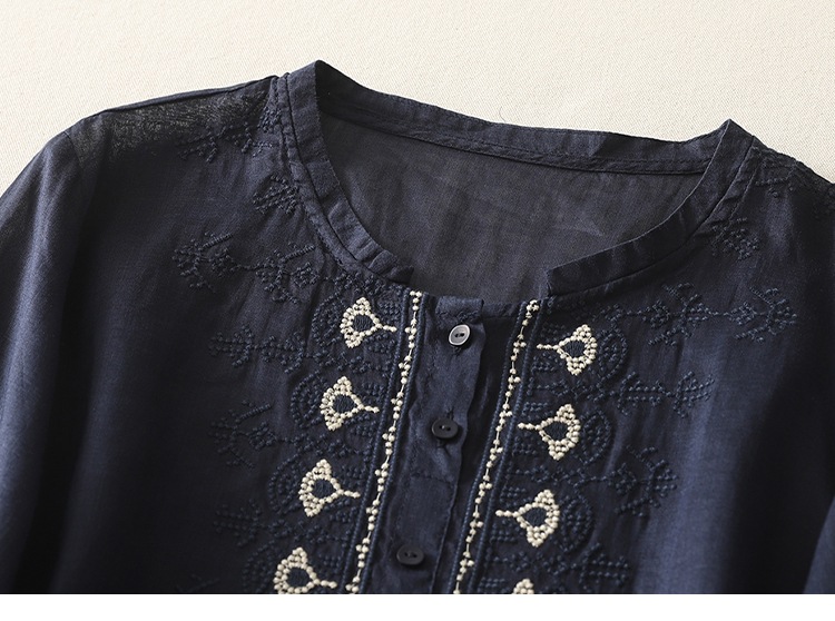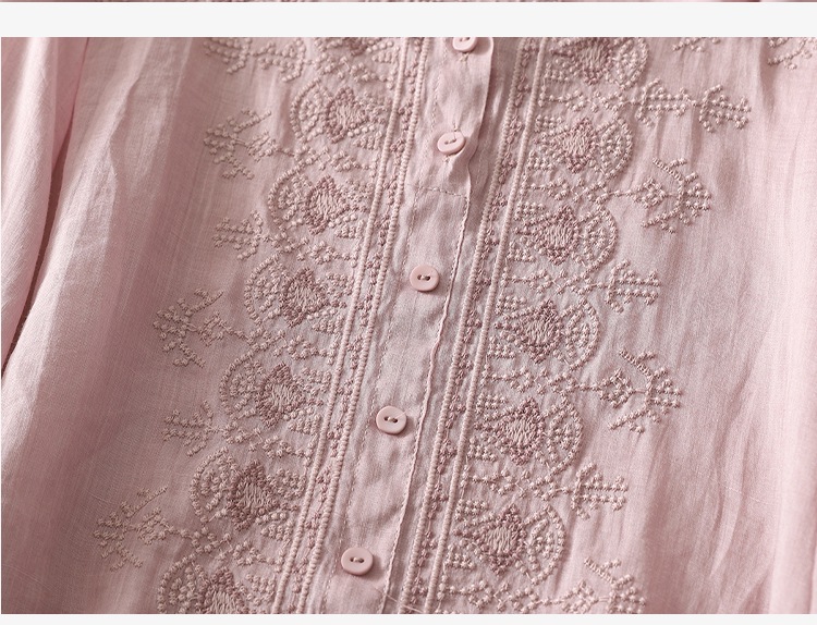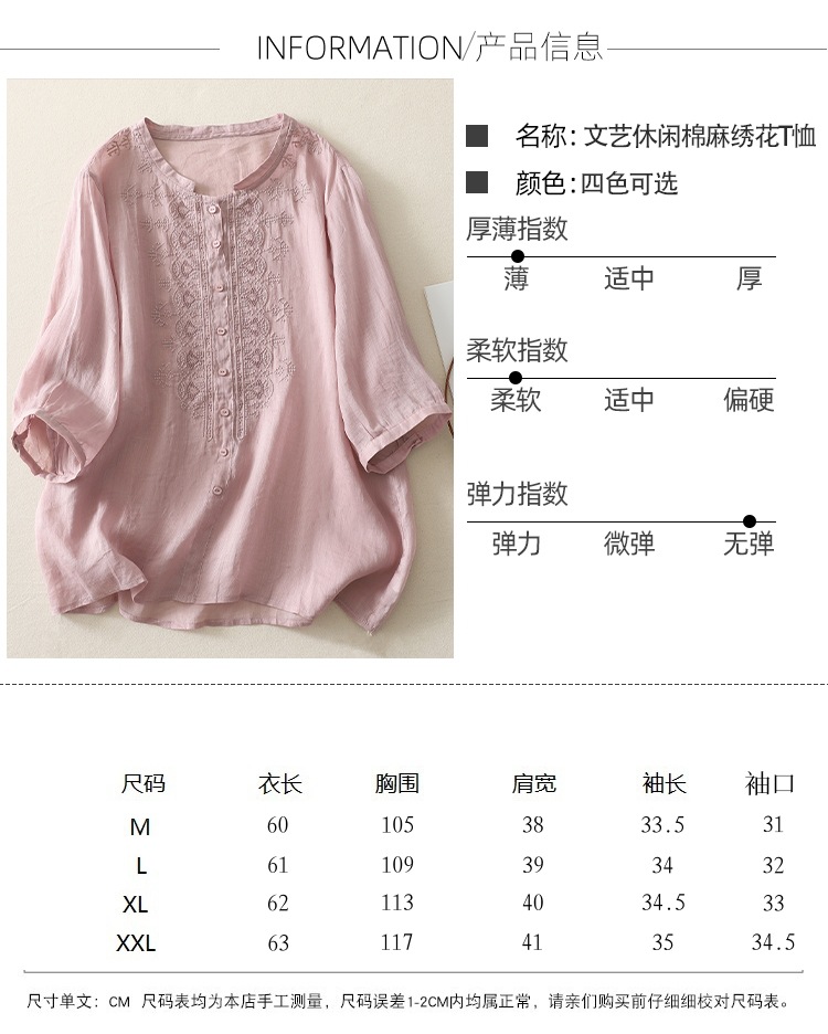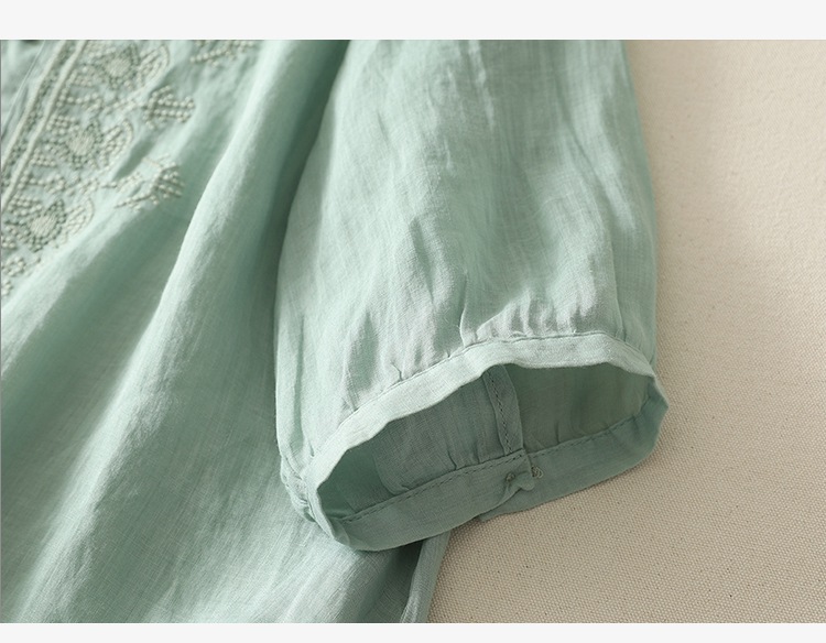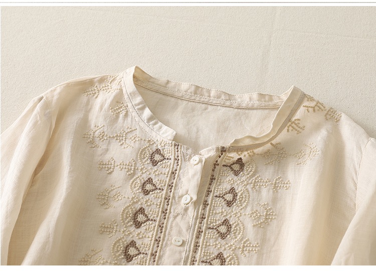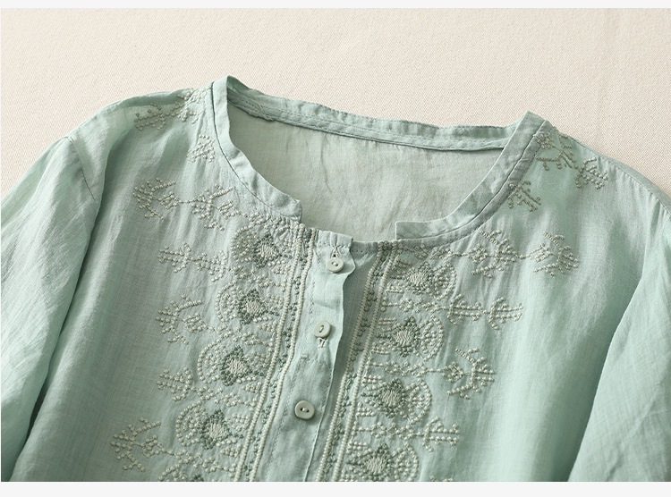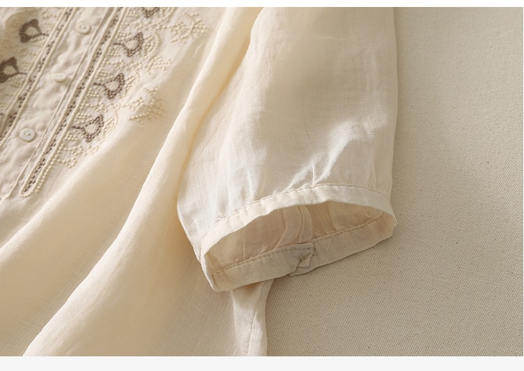 商品名称:实拍 文艺刺绣高端棉麻衬衫女纯色夏宽松显瘦五分袖轻薄小衫上衣