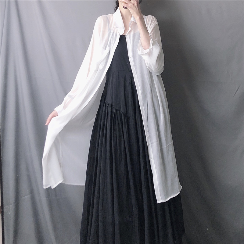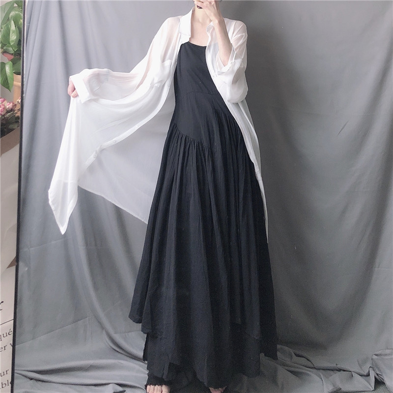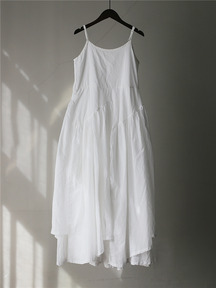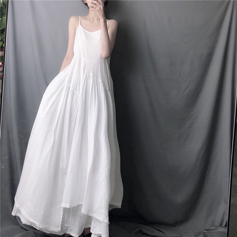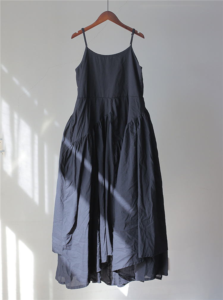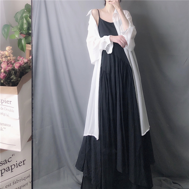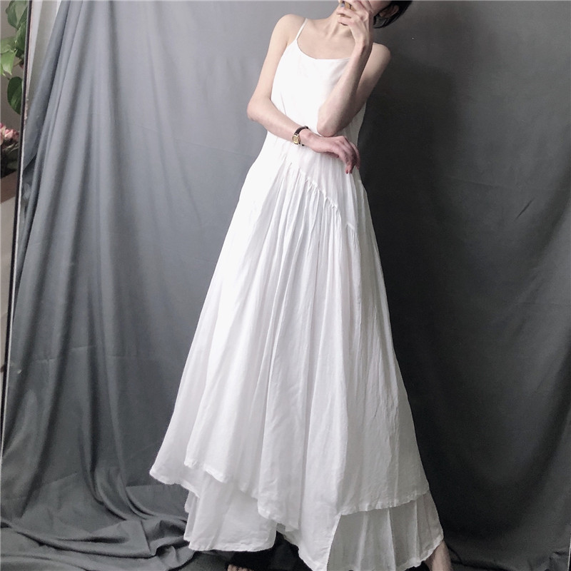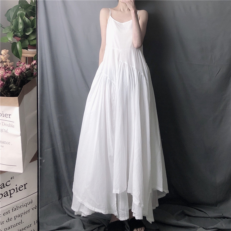 黑白超长不规则大摆吊带连衣裙女2024夏季新款文艺清新气质长裙子