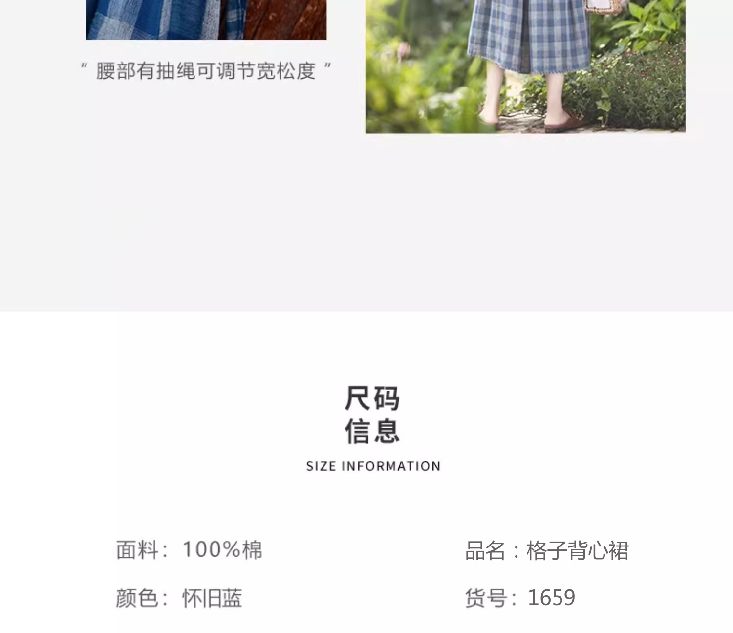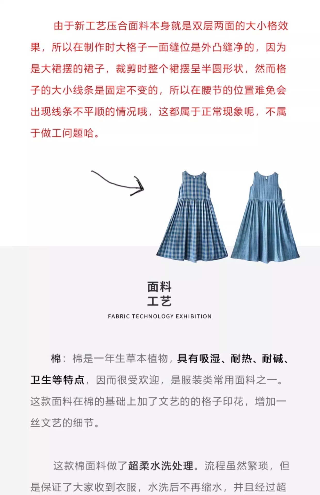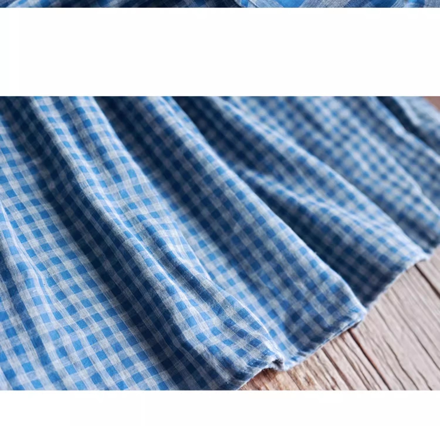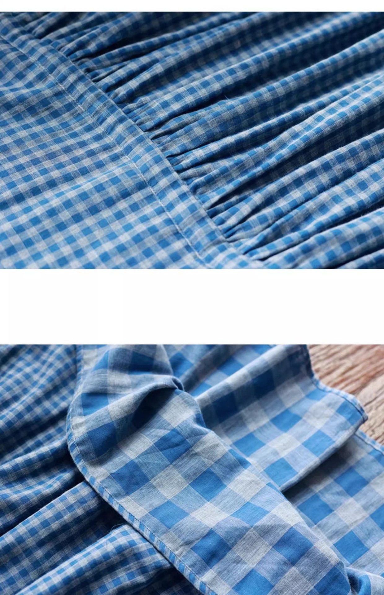商品名称:2025夏季新款纯棉双层纱圆领格子长裙设计感小众文艺无袖连衣裙女